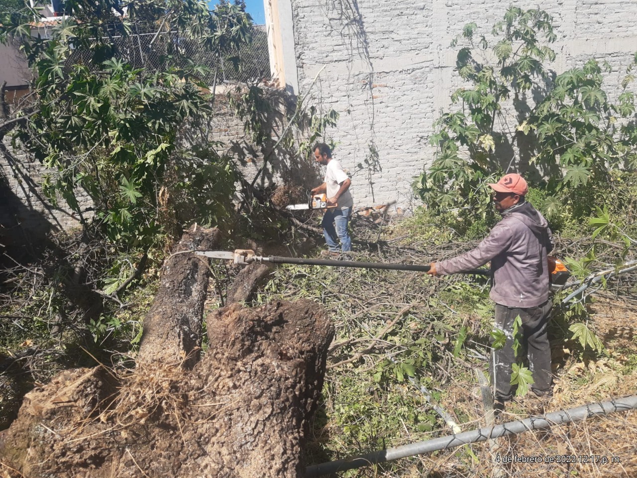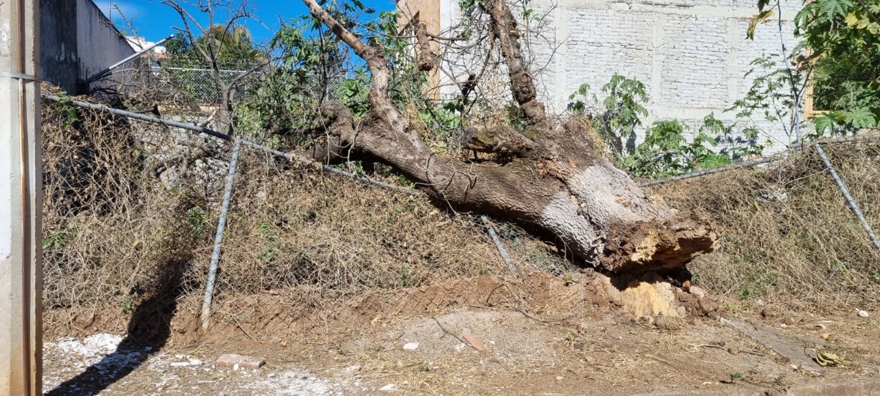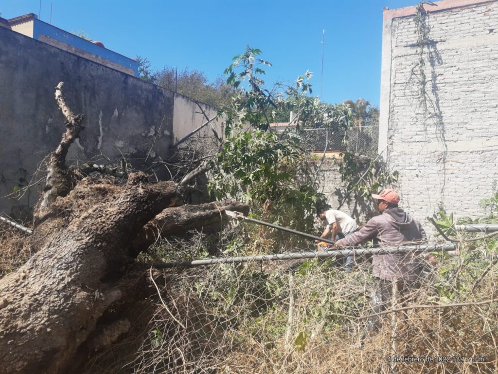 Personal de Protección Civil Municipal y de la Dirección de Aseo Público, Parques y Jardines, realizó el retiro de un árbol que, por su condición deteriorada cayó sobre la calle y banqueta en la calle Azaleas en el fraccionamiento Riveras del Celio.