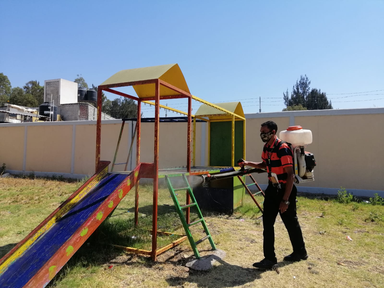 A través de la Oficialía Mayor, a cargo del C. Sergio Alfaro, se han mantenido las jornadas de sanitización en inmuebles públicos como lo son la Presidencia, el Sistema DIF, el Instituto de la Mujer, escuelas primarias y jardines de niños, entre otros.