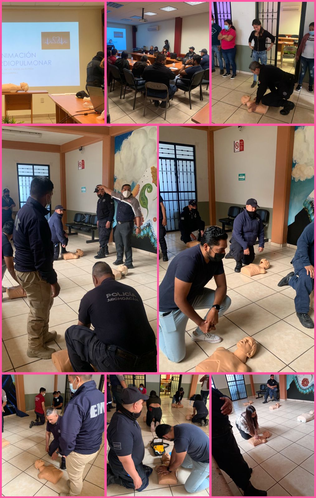 Continúa la capacitación a elementos de la Dirección de Seguridad Pública, media docena de policías participaron en el curso de Reanimación Cardio Pulmonar (RCP) impartido por Directivos y personal de Protección Civil Municipal de Jacona.