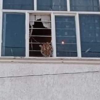 Rescatan Tigre que se asomaba por la ventana de una casa