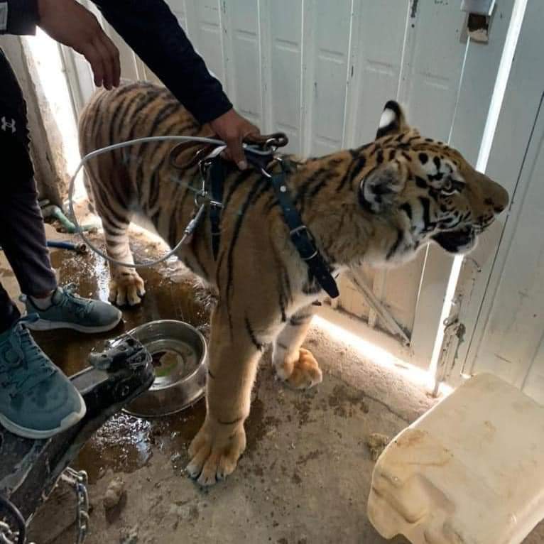 Rescatan a Baguira, una tigre de bengala hacinada en vivienda de Chimalhuacán