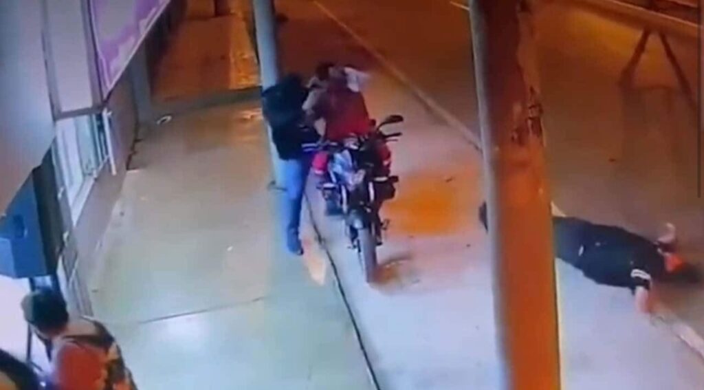 Según se observa en las imágenes, uno de los delincuentes, con arma en mano al reducir a la víctima se le escapó un disparo, el cual impactó en su cómplice, provocándole la muerte de forma instantánea.