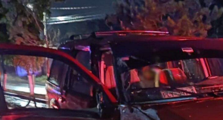 Uruapan, Mich.- 15 de mayo de 2022.- Una mujer sin vida y un hombre lesionado fue el saldo que dejó el choque de una camioneta contra un poste en el Viaducto a Jicalán, en este municipio de Uruapan.