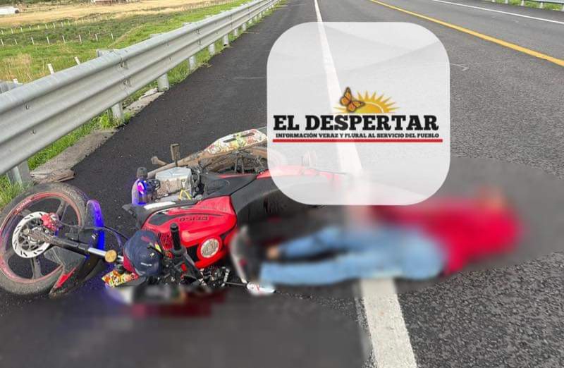 Sahuayo, Mich.- 17 de junio de 2022.- Un motociclista fue atacado a tiros, cuando viajaba a bordo de su motocicleta y a consecuencia del atentado cayó sin vida sobre la carpeta asfáltica. Del finado se ignora su identidad.