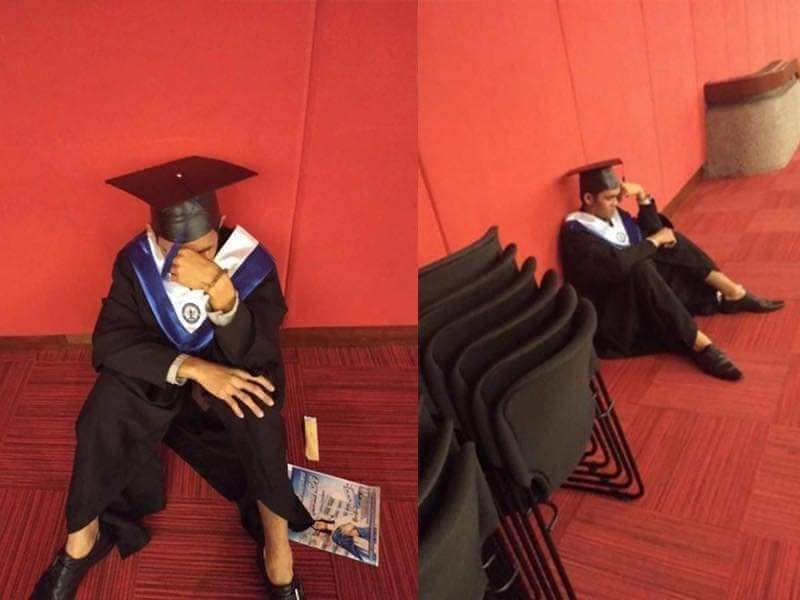 Joven universitario llora al notar que su familia no asistió a su ceremonia de graduación; imagen se hizo viral