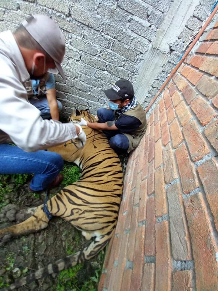 Coordinan acciones FGE-Profepa y Zoológico de Morelia para atender a tigre lesionado.