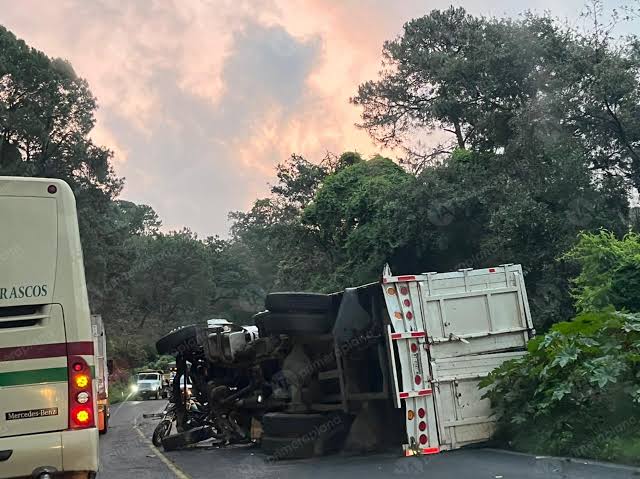 Saldo de un muerto deja choque de camiones en la libre Uruapan-Pátzcuaro