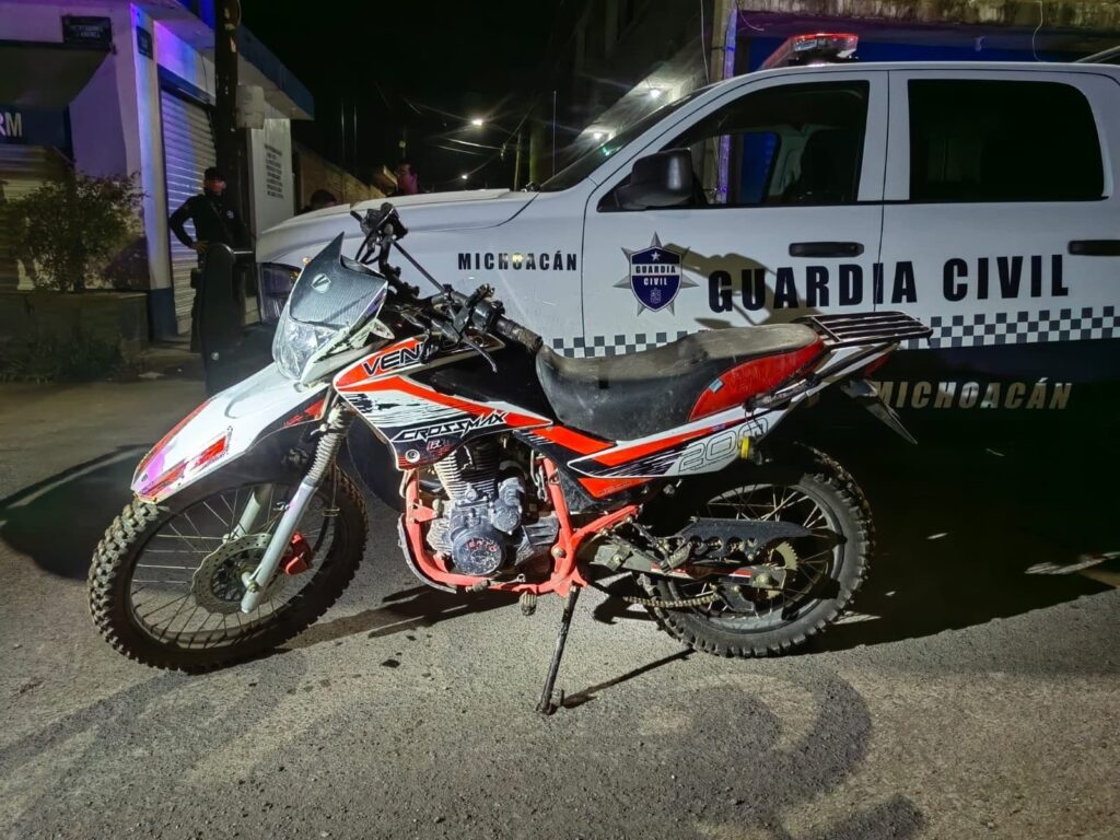 “Durante las labores para la disuasión del delito que llevan a cabo los agentes de la Guardia Civil y la Policía Municipal, sobre la colonia Libertad de esta población, los uniformados ubicaron a dos hombres a bordo de una motocicleta de la marca Vento, mismos que al notar la presencia de la autoridad intentaron huir. En el sitio, una persona de 17 años de edad fue alcanzada y asegurada”.
