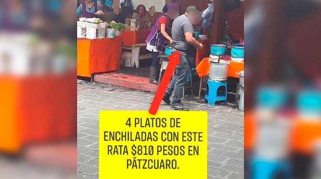 A través de los grupos de denuncia en Facebook un usuario afirmó que en uno de los puestos de comida ubicados en las cercanías de la Plaza Vasco de Quiroga en Pátzcuaro, pagó una excesiva cuenta de 810 pesos cuando solo consumió cuatro platos de enchiladas.