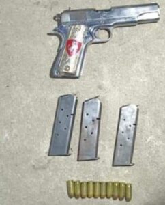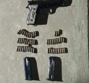Los uniformados realizaron una inspección a los implicados, mismos que portaban dos armas de fuego calibres .9 y .45 milímetros, cartuchos útiles, así como dos equipos de radiocomunicación. Una vez realizadas las actuaciones respectivas, los indiciados y lo decomisado serán presentados ante la autoridad correspondiente para determinar su situación jurídica conforme a Derecho.
