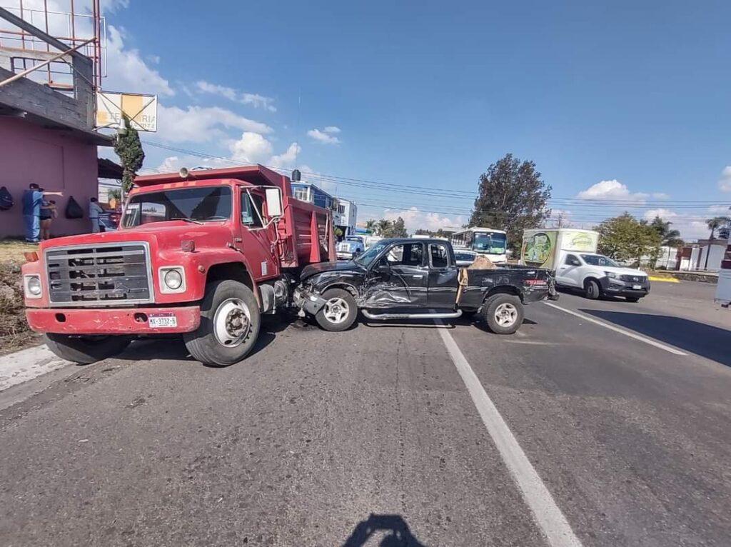 Chocan dos vehículos contra un camión volteo en la carretera a Pátzcuaro