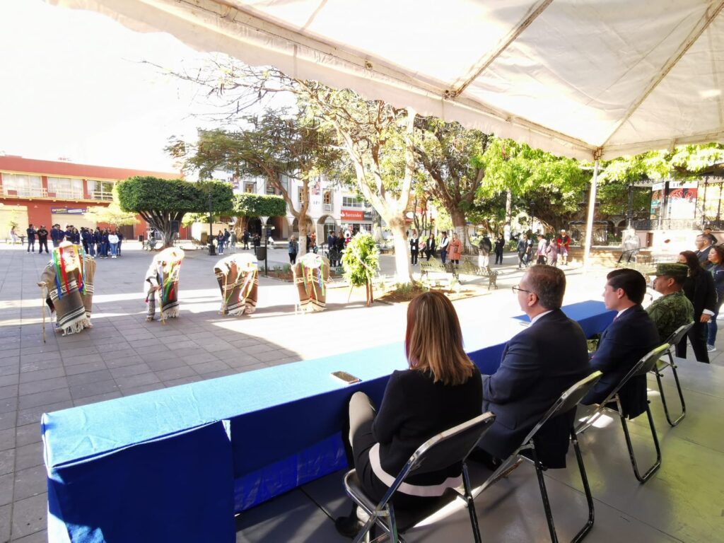 En evento efectuado en la plaza principal, el secretario del ayuntamiento, Felipe Umaña Melo, puntualizó que en este importante documento se protege el estado de derecho, porque están integradas las demandas de la Revolución Mexicana.