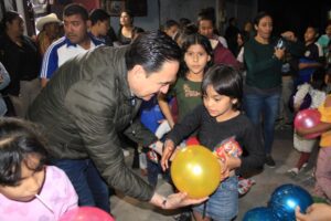 Zamora, Michoacán; a 22 de febrero de 2023.- El presidente Carlos Soto Delgado acompañó a los habitantes de la colonia Salinas de Gortari para celebrar la tradición del “Levantamiento del Niño Dios”, acompañado de servidores públicos para entregar regalos a los infantes y fortalecer la cultura del municipio.