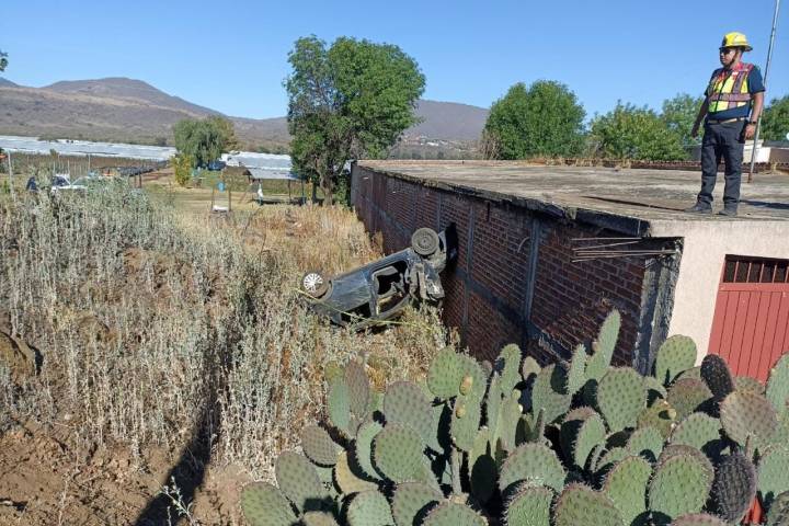 En Tangancícuaro, Michoacán, ocurrió un accidente automovilístico este lunes por la mañana, donde dos jóvenes resultaron heridos al volcar su vehículo y caer en la azotea de una casa.