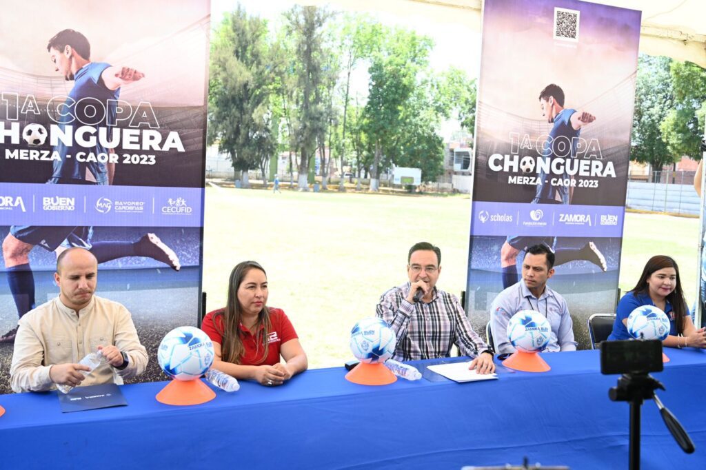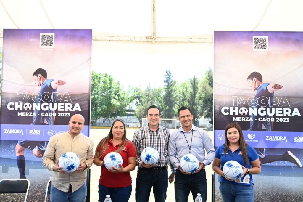 Zamora, Michoacán; a 17 de abril de 2023.- Para tener un escenario donde los jóvenes talentos puedan acceder a equipos de futbol profesional y fomentar el deporte, el presidente Carlos Soto Delgado anunció el desarrollo de la Primera Copa Chonguera Merza-Caor 2023.
