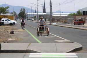 Zamora, Michoacán; a 12 de mayo de 2023.- Para darle mayor seguridad a los peatones y ciclistas del oriente de la ciudad, el Buen Gobierno rehabilitó la ciclovía de Camino a El Vergel.