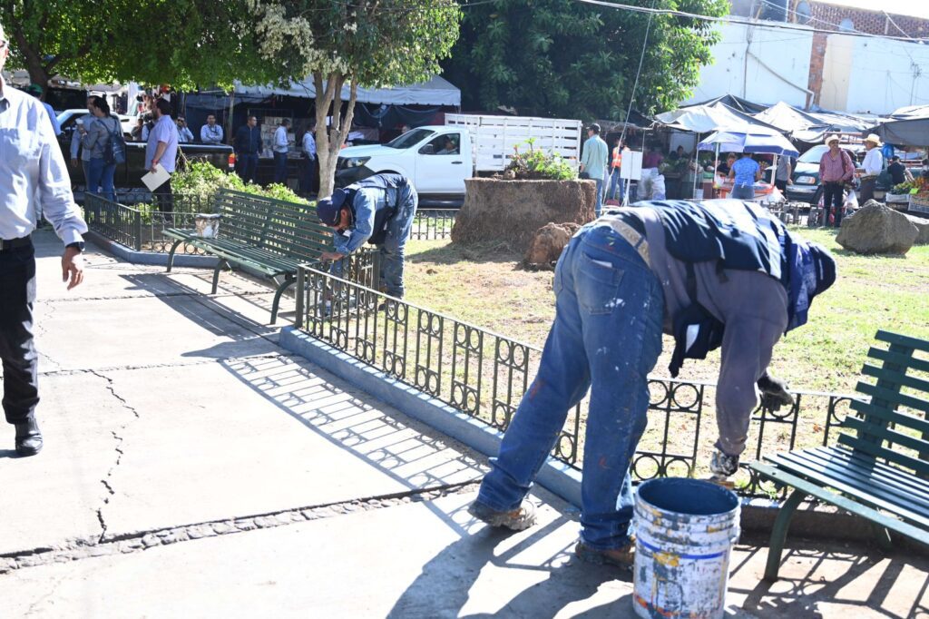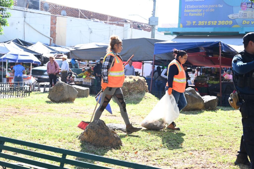 Durante las actividades, los empleados municipales realizaron la poda de árboles, la re-nivelación en asfalto de la zona de parada de microbús calle Leonardo Castellanos, bacheo sobre las calles Jiquilpan, Ávila Camacho, Alonso Martínez, la limpieza y lavado de calle Jiquilpan, Ávila Camacho y entorno a la plazoleta, además de la rehabilitación y funcionamiento de la fuente del espacio de descanso.