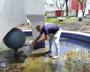 Zamora, Michoacán; a 18 de agosto de 2023.- Con la encomienda de dignificar los espacios públicos y brindar el mantenimiento correspondiente que permita el buen funcionamiento de las instalaciones, el Gobierno Municipal llevó a cabo la rehabilitación de la fuente ubicada en el parque del fraccionamiento La Florida.