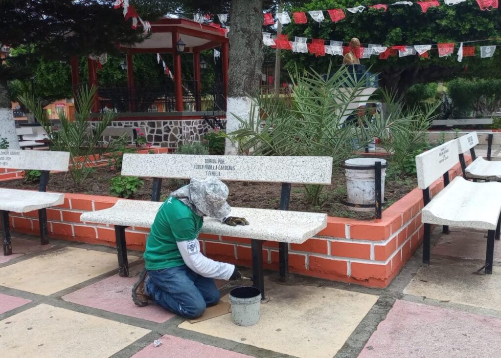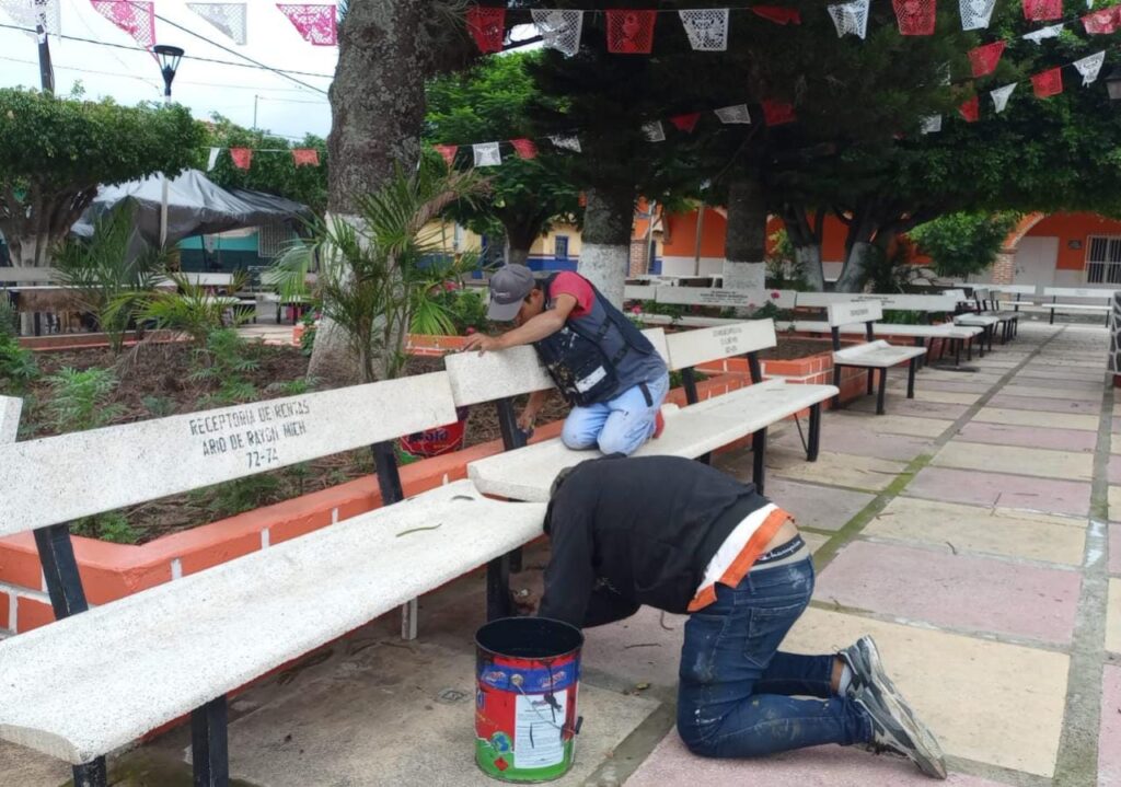 Mariscal Ochoa abundó que también se trabaja en el embellecimiento de la plaza del lugar, con labores de pintura en herrería, bancas, plafones y columnas del kiosco, así como la impermeabilización, que permitirá dar un cambio radical al espacio de uso común, que es tradicionalmente utilizado para el esparcimiento y descanso de los vecinos.