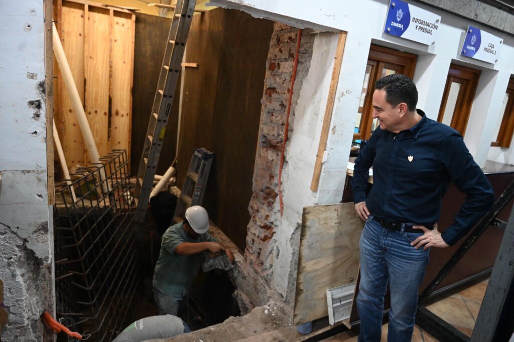 Zamora, Michoacán; a 24 de agosto de 2023.- En cumplimiento a su palabra con las personas con discapacidad, adultos mayores y mujeres embarazadas, Carlos Soto, dio el banderazo de arranque a la obra de construcción del elevador que operará en el edificio de la Presidencia Municipal.