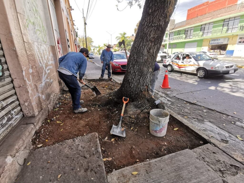 En tres sectores de este importante cruce de la ciudad, las raíces de los árboles han originado el desnivel de los andadores peatonales, así como la fractura de los mismos, lo que representaba riesgo para los ciudadanos que cotidianamente transitan por el lugar.