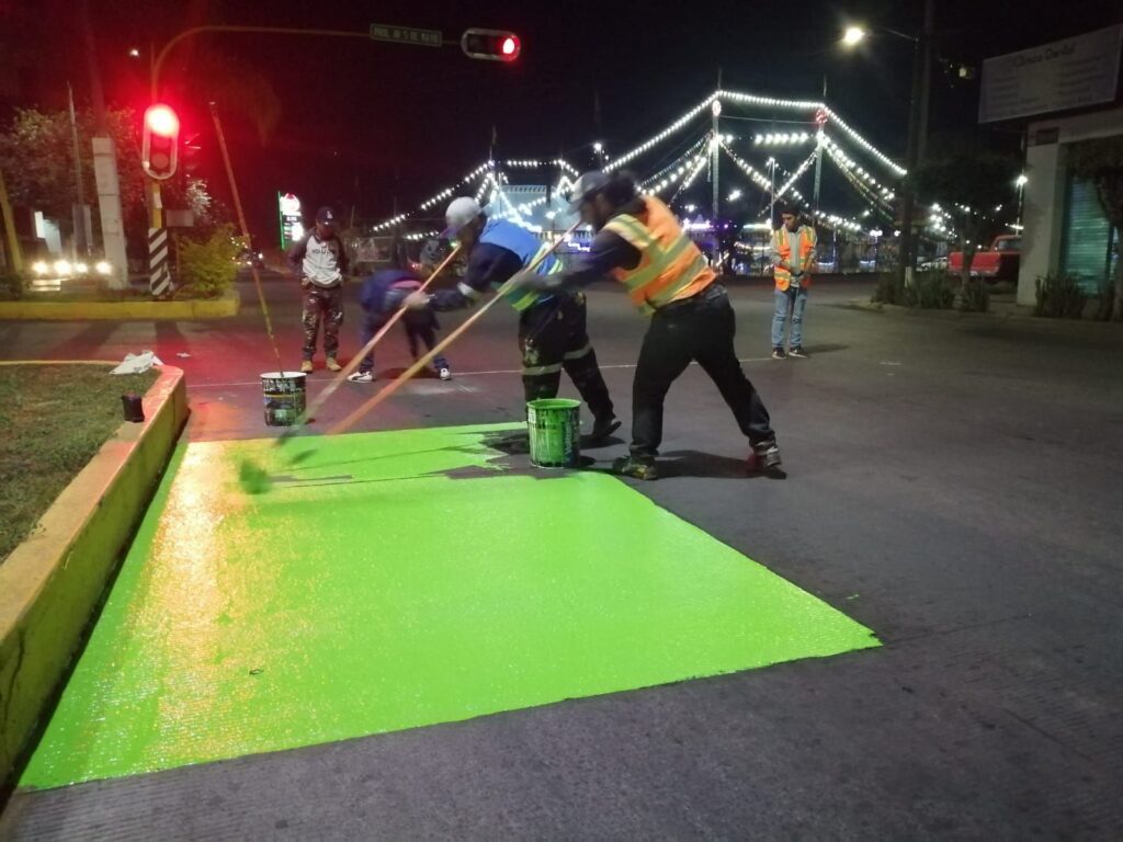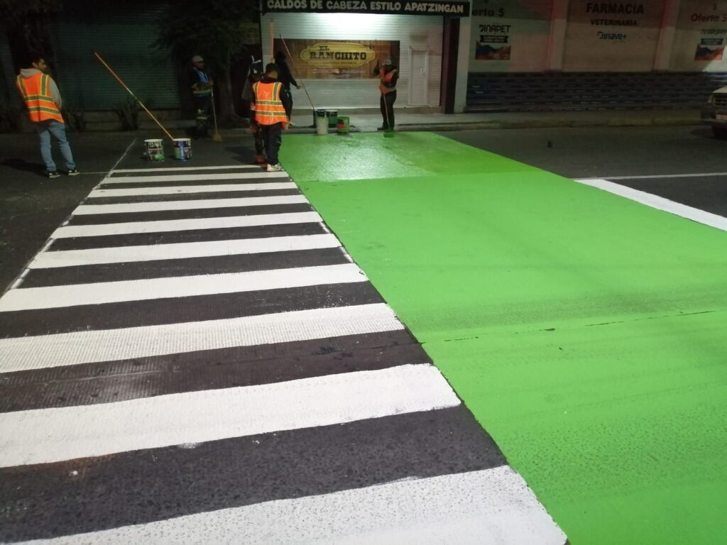 Para evitar afectaciones a la ciudadanía, los trabajos se están realizando durante las noches para pintar los carriles en ambos sentidos, pasos peatonales y áreas de espera para los ciclistas mientras cambia el semáforo, para que los automovilistas puedan visibilizarlos y se prevengan accidentes.