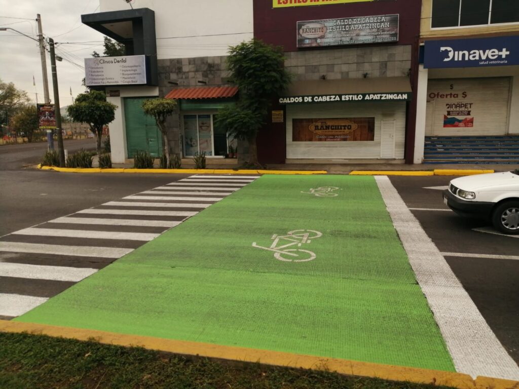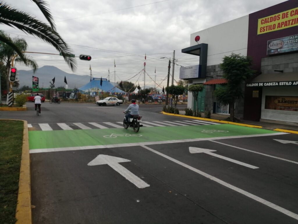 Farfán Cázares detalló que la zona delimitada con el color verde es para el desplazamiento de las bicicletas y que en cada cruce, donde existe un semáforo, se pintaron los cajones de espera de estos vehículos de dos ruedas, para que esperen el cambio de las luces y sigan a su destino.