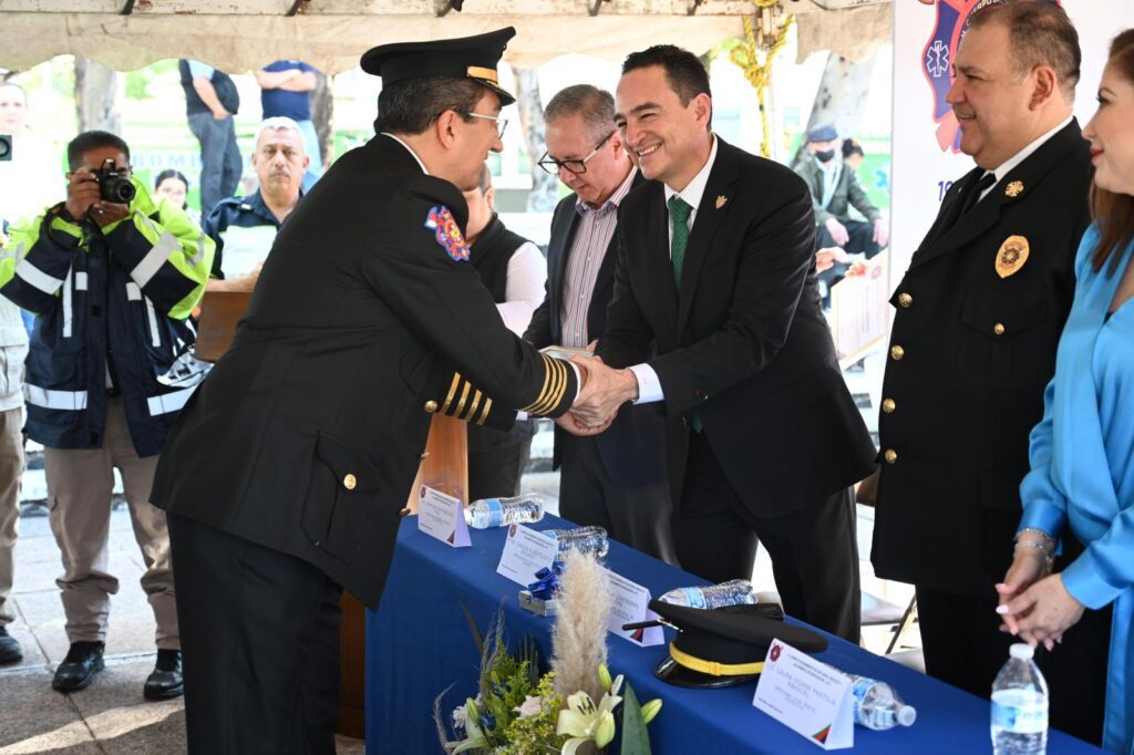 Zamora, Michoacán; a 10 de febrero de 2024.- Con motivo del 47 aniversario de la creación del Cuerpo de Rescate y Salvamento Michoacán, el presidente Carlos Soto, felicitó y entregó un reconocimiento al Comandante Estatal Efren Conteras y sus 289 elementos que pertenecen a las 8 cooperaciones distribuidas en todo el Estado por su invaluable servicio a los zamoranos y michoacanos.