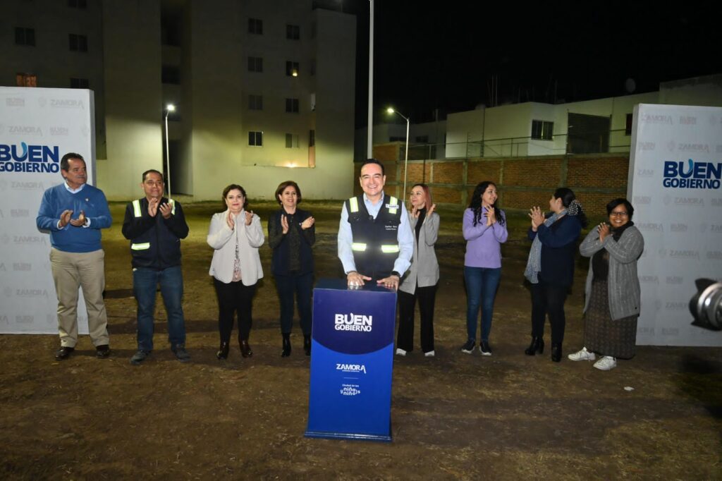 Zamora, Michoacán; a 14 de febrero de 2024.- Para que las familias tengan espacios seguros donde puedan convivir tanto de día como de noche y en cumplimiento a su palabra de mejorar el tejido social, el presente Carlos Soto, le entregó la obra de iluminación del parque a las familias del fraccionamiento Villas de Jericó, en donde fueron invertidos recursos por un promedio de 250 mil pesos que directamente beneficiará a 400 familias.