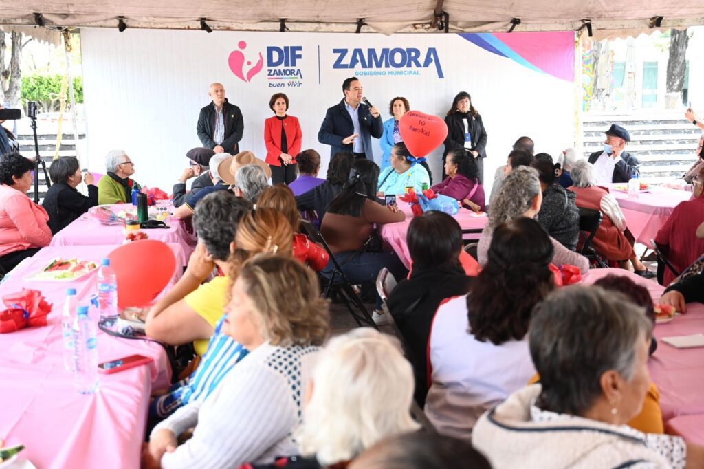 Zamora, Michoacán; a 14 de febrero de 2024. – En un ambiente lleno de armonía, amor y amistad, el Sistema para el Desarrollo Integral de la Familia (DIF) Municipal, brindó un espacio de celebración especial para los adultos mayores, en el marco del día de San Valentín, en las inmediaciones de la explanada del Espíritu Santo, con alimentos, música y baile.