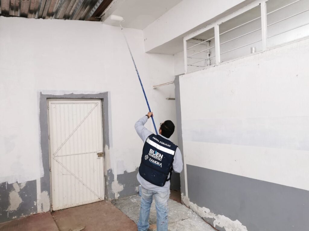 Zamora, Michoacán; a 15 de febrero de 2024.- Para que las instalaciones deportivas cuenten con áreas dignas y funcionales para beneficio de los usuarios, es relevante para el presidente, Carlos Soto Delgado, razón por la que el Buen Gobierno lleva a cabo labores de mantenimiento y rehabilitación de los vestidores del campo “A” de la Unidad Deportiva “El Chamizal”.