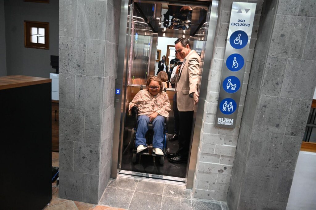 Indicó que el elevador será un medio para brindar autonomía a las personas de la tercera o con discapacidad, que ya no tendrán que esperar en la planta baja para que puedan pedir a alguien que haga sus trámites en las oficinas municipales o estatales, porque ahora ellos tendrán la oportunidad de atender sus necesidades.