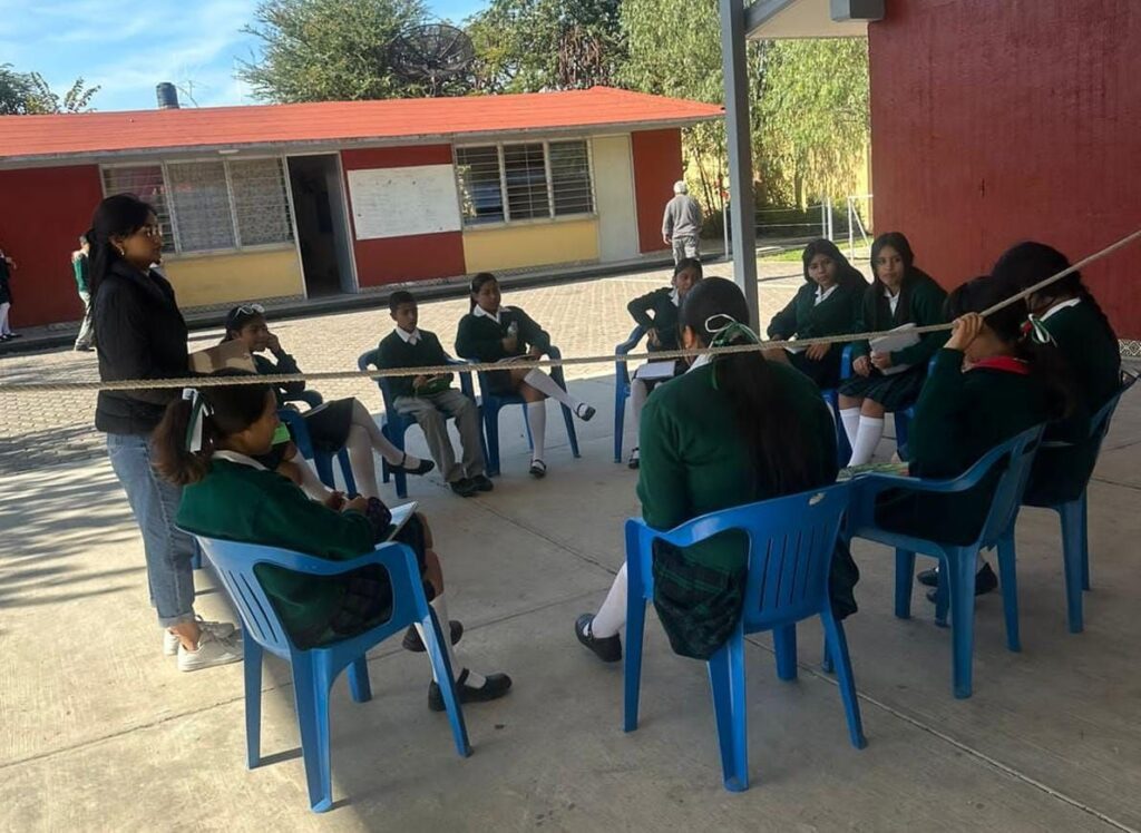 Por su parte, el Sistema de Protección Integral de Niñas, Niños y Adolescentes (SIPINNA), trabajó en la Telesecundaria de Romero de Torres con el grupo de apoyo emocional para compartir experiencias sobre diferentes temas como la comunicación asertiva, la autoestima, el amor propio y el manejo de emociones, para de esa forma realizar un proyecto de vida a corto plazo.