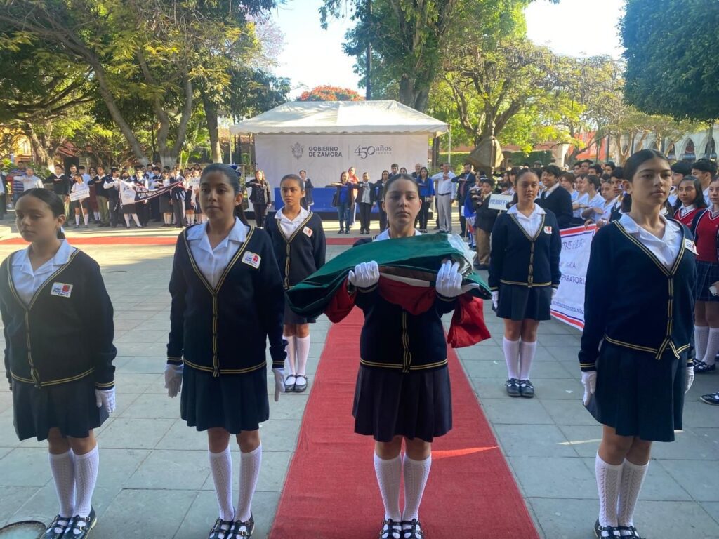 Zamora, Michoacán, a 18 de Marzo de 2024.- Autoridades municipales y educativas del sector 07 conmemoraron la Expropiación Petrolera, en donde recordaron los hechos históricos realizados por el entonces presidente Lázaro Cárdenas que trajeron beneficios para los mexicanos.