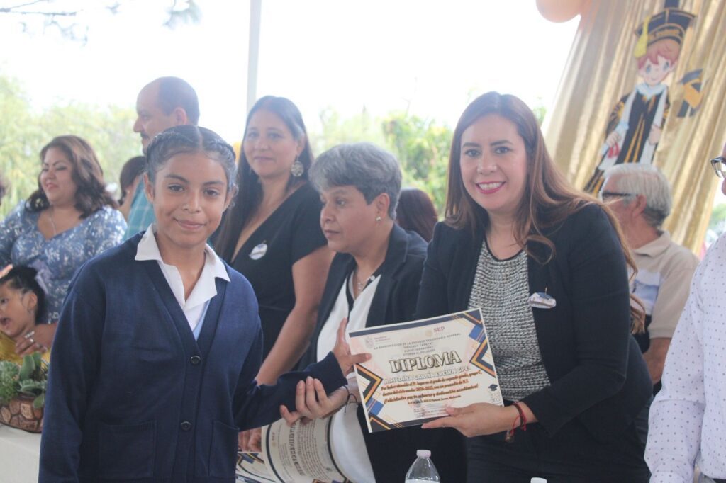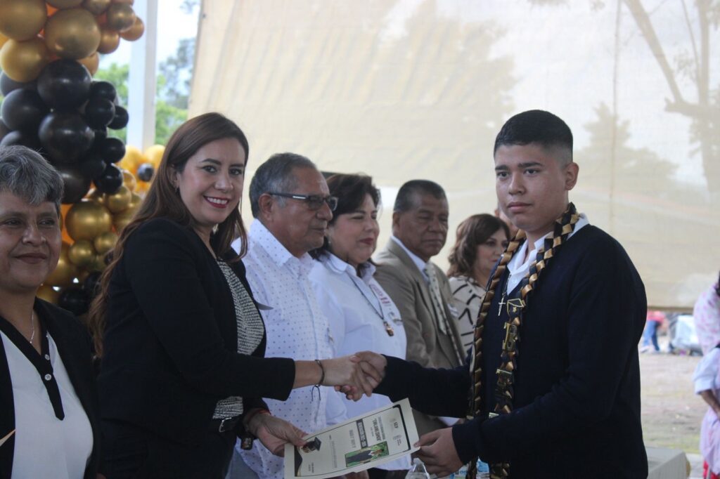 Destacó que “hacemos un digno reconocimiento a su esfuerzo y dedicación, aplaudimos todo el apoyo que sus padres y madres les han dado, así como toda la dedicación que sus maestros les han brindado”. En dicho evento, la Síndica estuvo acompañada de la Directora del plantel, Mtra. Leticia Reyes Navarrete, autoridades municipales y educativas y representantes de los padres de familia.
