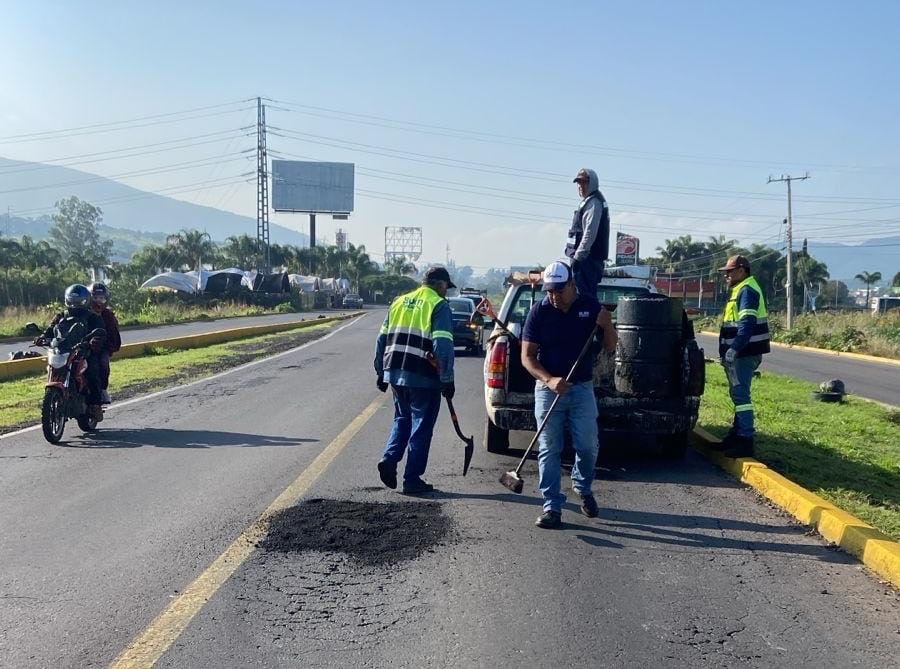 Sergio Ascencio Pulido, director de Obras Públicas, informó que las tres cuadrillas de bacheo trabajan de manera continua para resarcir los daños en el cuerpo de rodamiento de las calles Lázaro Cárdenas, en la comunidad de El Llano, así como Tabachín y Alcatraz en La Rinconada. También se atendieron sectores de La Ladera y La Estancia de Amezcua, además de otras zonas con afectaciones.