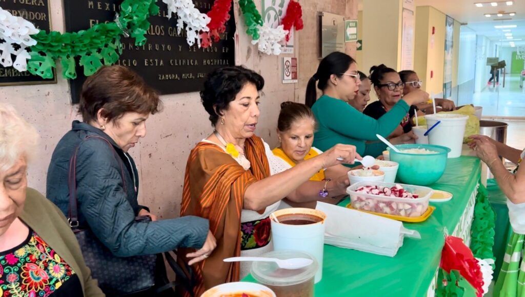 De manera regular, el DIF Zamora brinda desayunos semanales a los familiares de pacientes hospitalizados, pero en esta ocasión, además de la ración acostumbrada, se compartió un plato de pozole acompañado de aguas frescas, con el objetivo de generar un ambiente de unión y tradición durante el mes patrio.