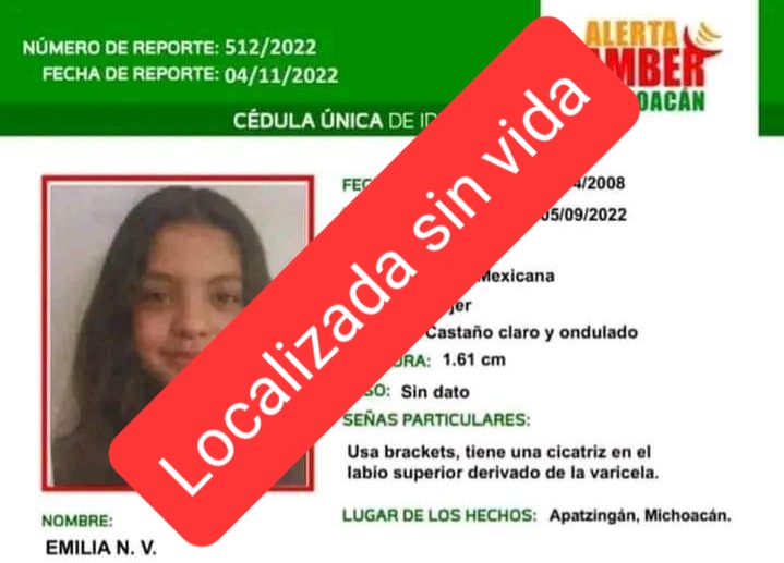 En Apatzingán Tras 7 meses de su secuestro, Emilia de 14 años fue localizada sin vida